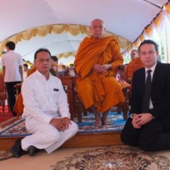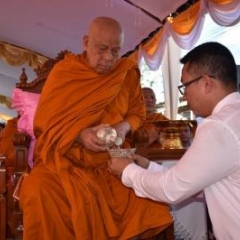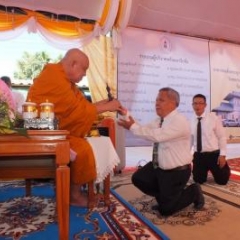 เจ้าประคุณสมเด็จพระวันรัต เจ้าอาวาสวัดบวรนิเวศวิหารประกอบพิธีวางศิลาฤกษ์อาคารสมเด็จพระญาณสังวร สมเด็จพระสังฆราช สุวัฑฒนมหาเถระ ณ โรงพยาบาลลานสกา จังหวัดนครศรีธรรมราช เมื่อวันอังคาร ที่ ๒๖ มีนาคม พุทธศักราช ๒๕๖๒