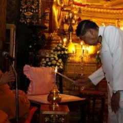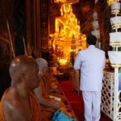 | - ทรงจุดธูปเทียนเครื่องนมัสการบูชาพระพุทธชินสีห์ประธานพระอุโบสถ | |