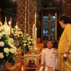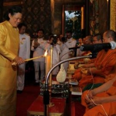 | - เสด็จ ฯ ไปทรงจุดเทียนทอง เทียนเงิน และธูปเทียนเครื่องบูชากระบะมุก | |