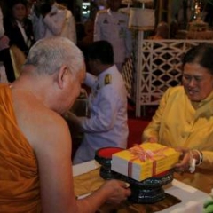 | - โปรดเกล้า ฯ ให้ นายกรัฐมนตรี ประเคนจตุปัจจัยไทยธรรมถวายพระสงฆ์ เสร็จแล้ว | |