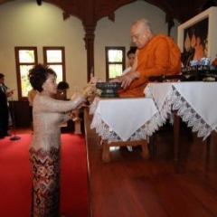 ภาพพิธีสมเด็จพระวันรัตประทานพระกริ่งนิรันตราย ณ อาคารมนุษยนาควิทยาทาน วัดบวรนิเวศวิหาร ๒ สิงหาคม ๒๕๕๗